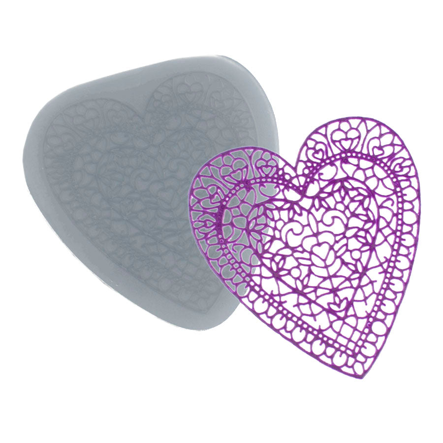 Molde de Silicone 781 - Renda de Coração Vitral Médio