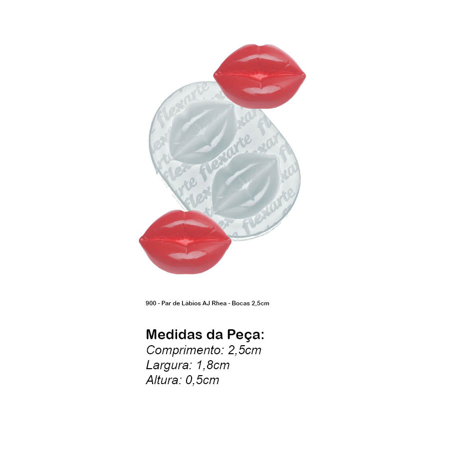 Molde de Silicone 900 - Par de Lábios AJ Rhea - Bocas 2,5cm
