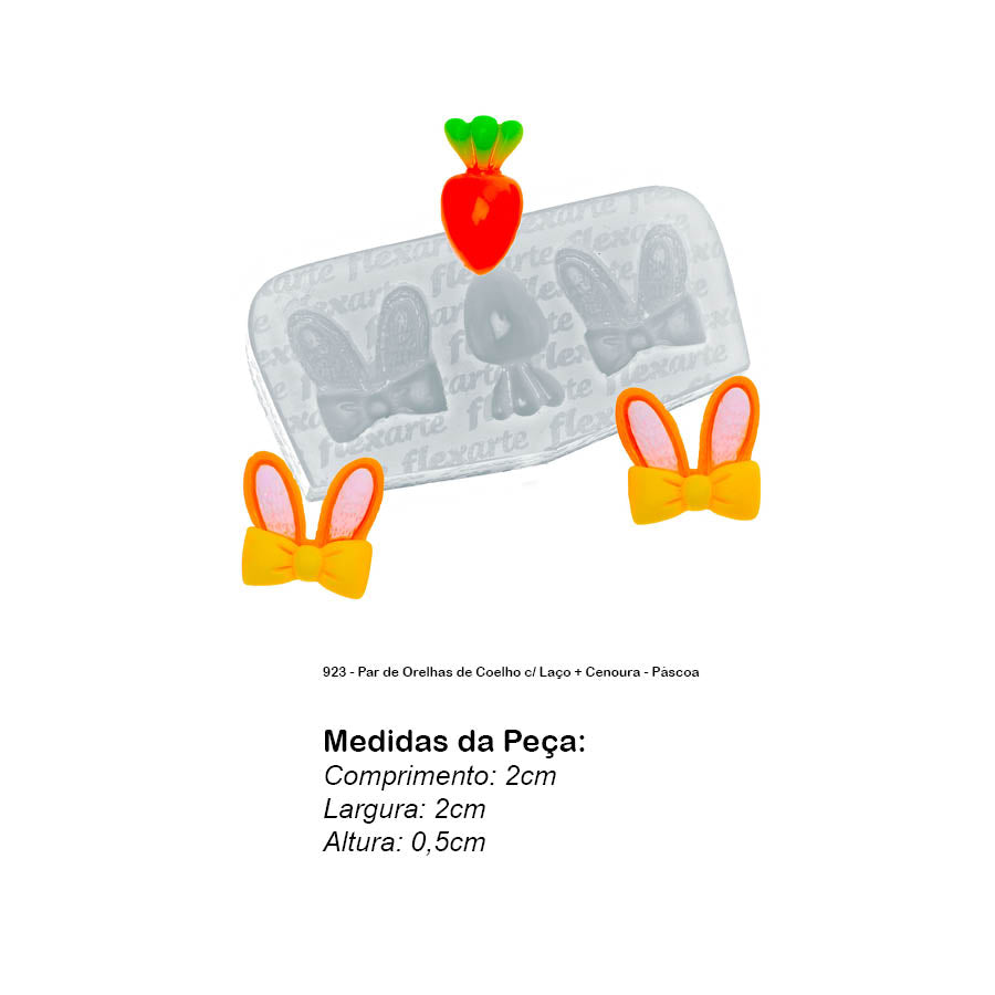 Molde de Silicone 923 - Par de Orelhas de Coelho c/ Laço + Cenoura - Páscoa