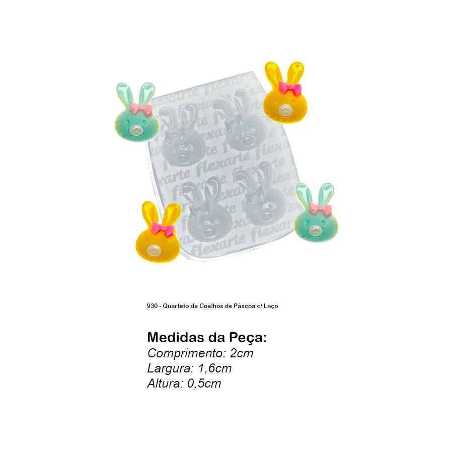 Molde de Silicone 930 - Quarteto de Coelhos de Páscoa c/ Laço