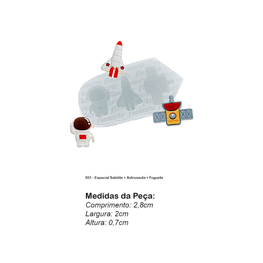 Molde de Silicone 951 - Espacial Satélite + Astronauta + Foguete